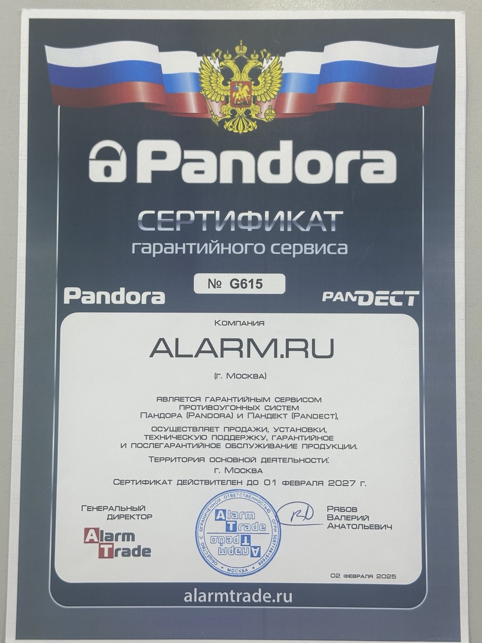 Все представленное на нашем сайте оборудование мы продаем в розницу и оптом, отправляем по России и за рубеж, а также устанавливаем в сети собственных авторизованных технических центров в Челябинске, Санкт-Петербурге и других городах России. Мы даем гарантию на свои работы 3 года, а также предоставляем все необходимые сертификаты, подтверждающие право работать с оборудованием Pandora и Pandect — никаких проблем с заводской гарантией на автомобиль при обращении к нам у вас не возникнет.